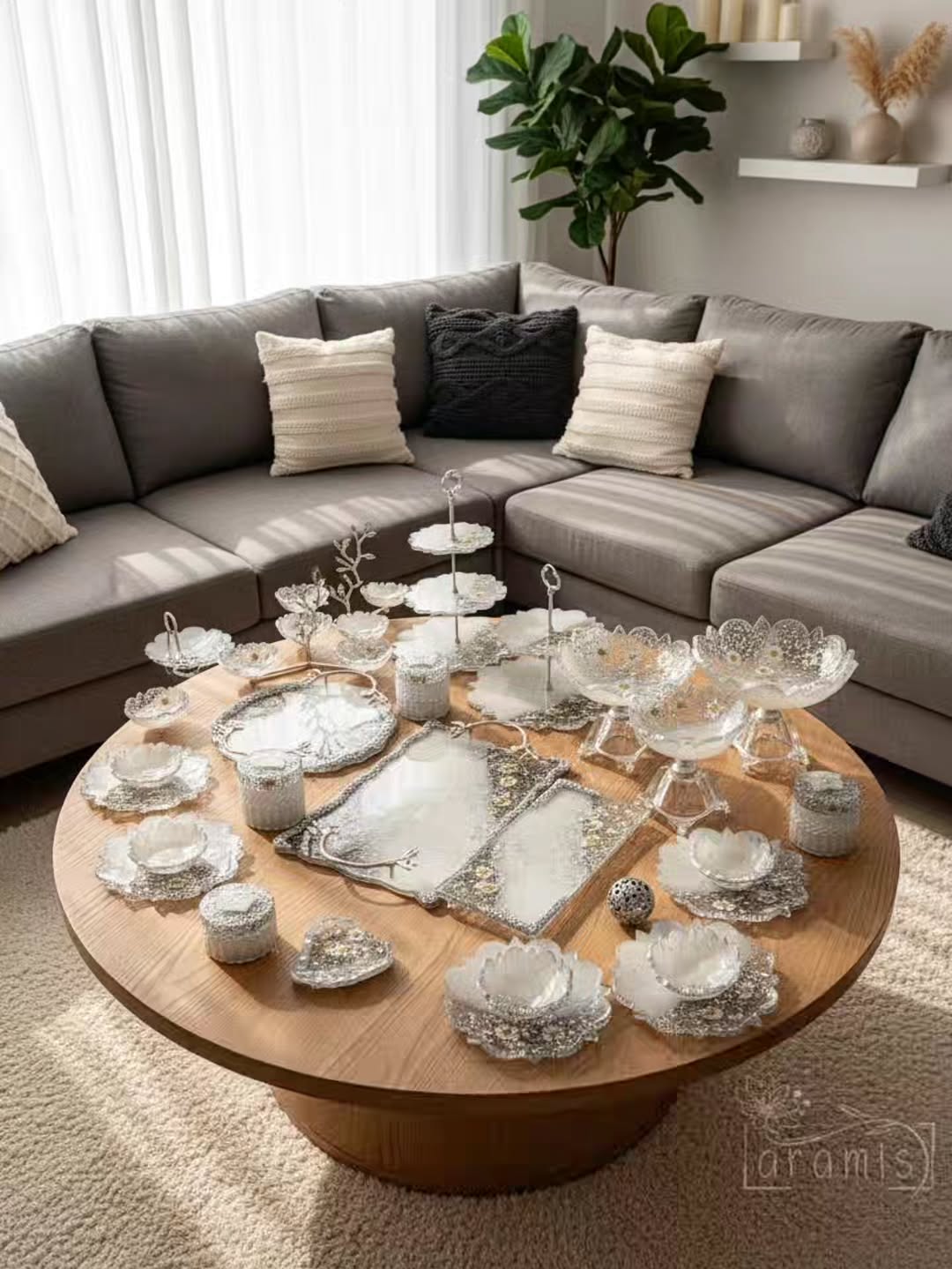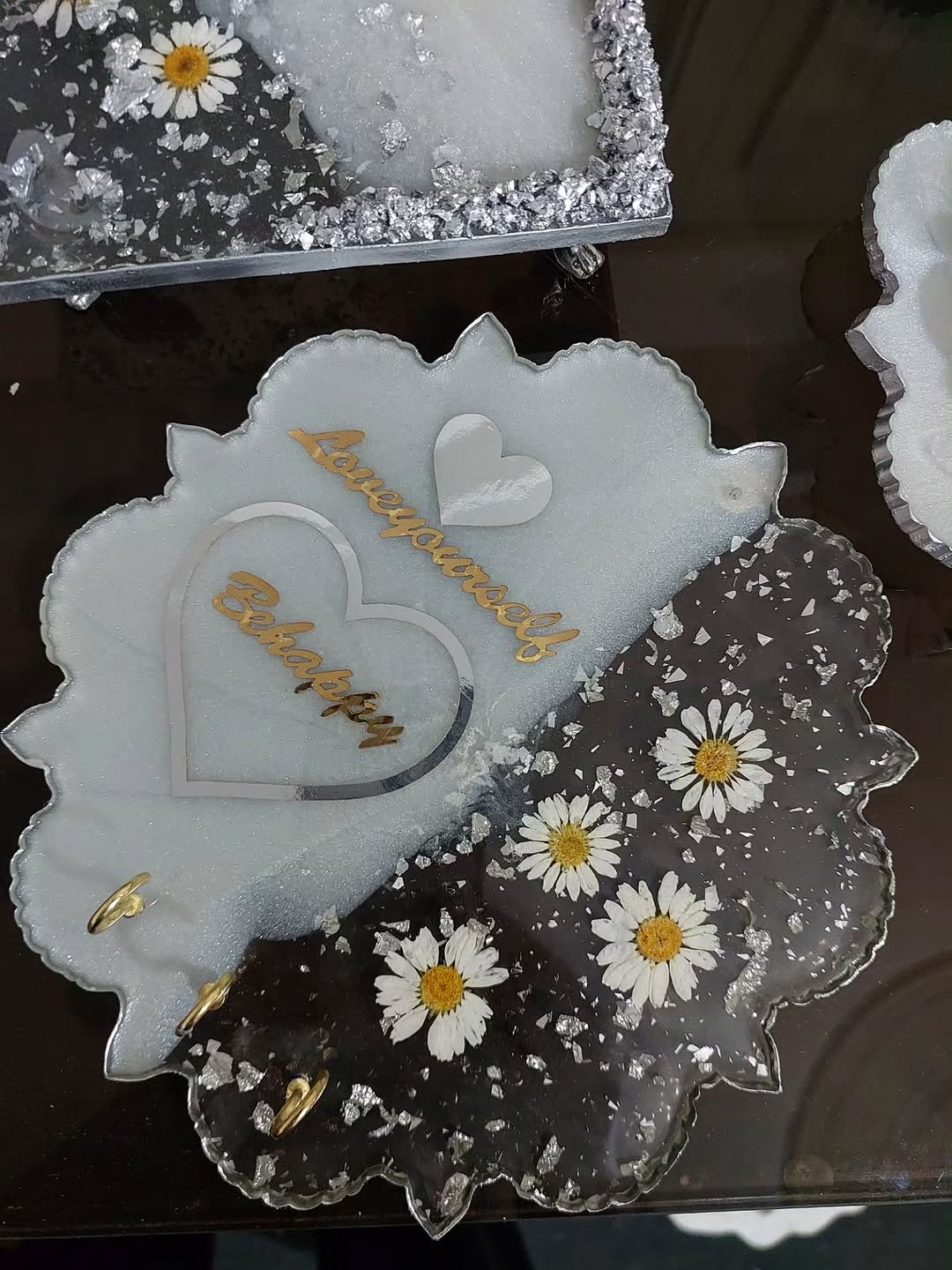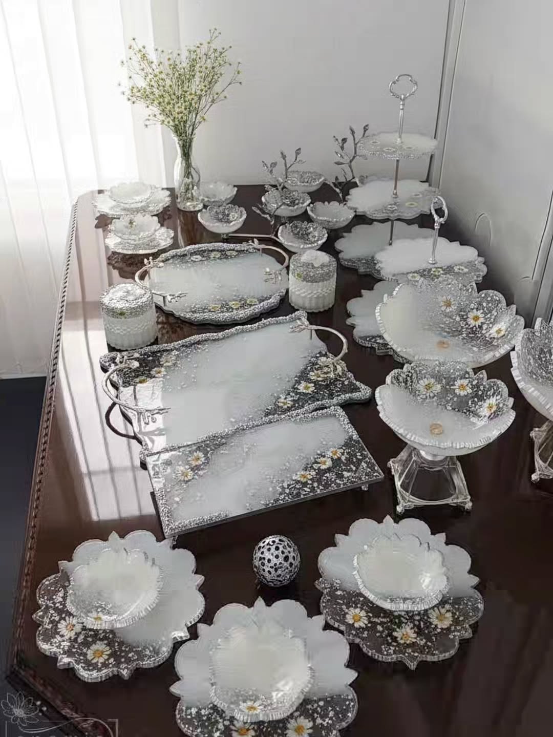 سرویس عروس کار شده با ورق نقره و بابونه.جنس رزین اپوکسی
