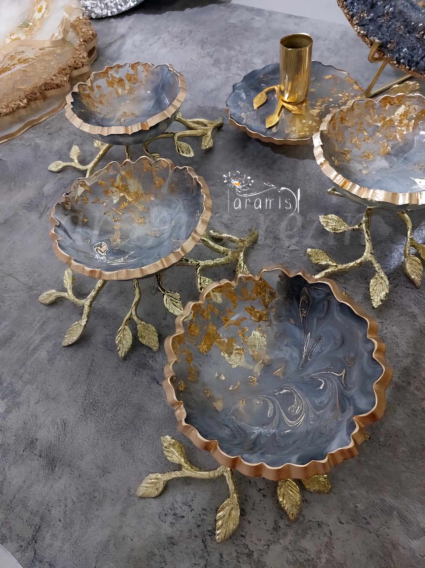 ۶عدد پیاله پایه برگ برنجی آبکاری فورتیک