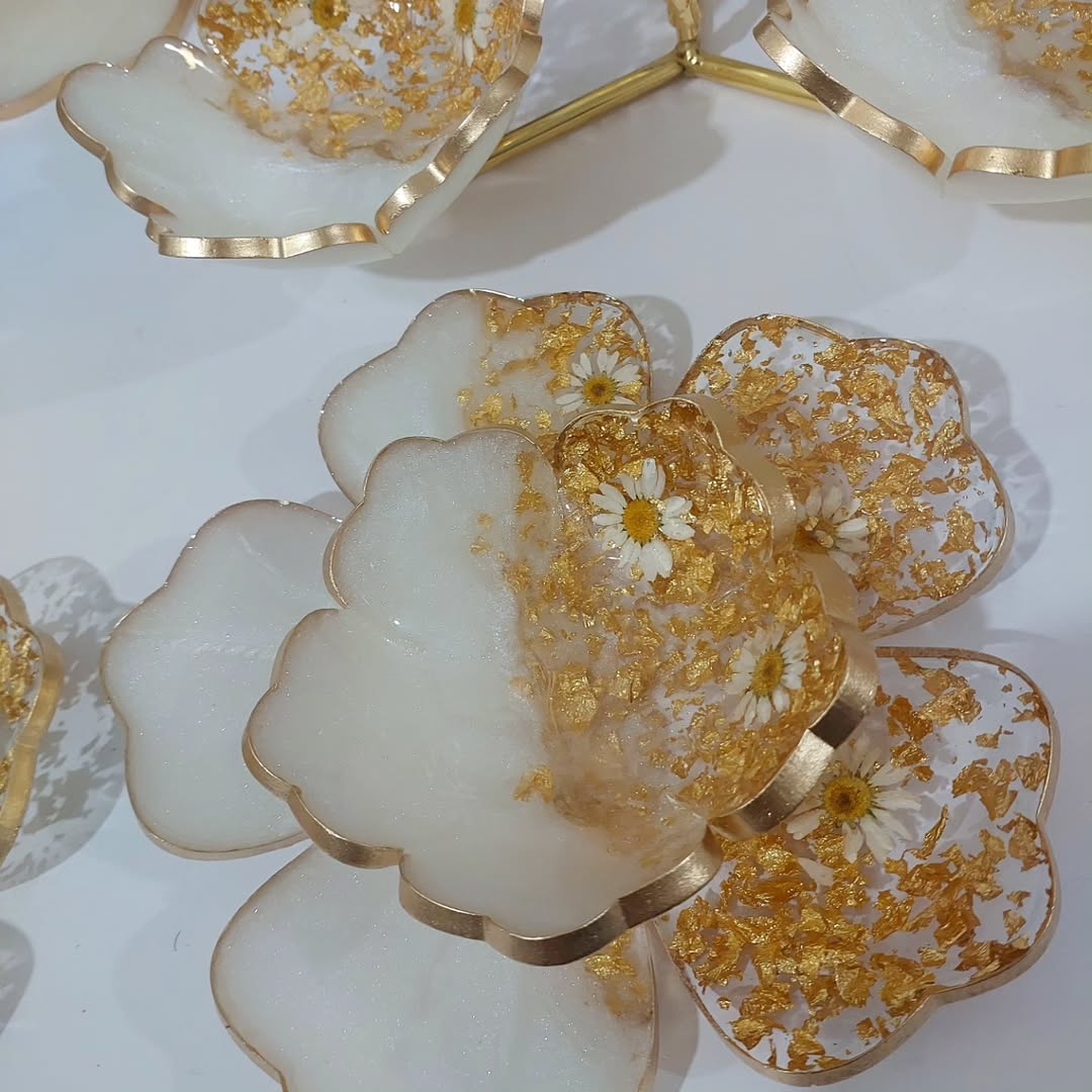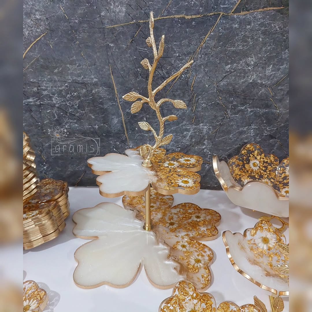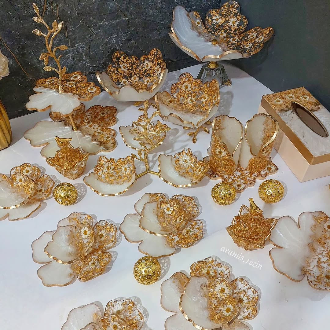 سرویس ظروف پذیرایی رزینی ورق طلا بابونه طرح نازگل