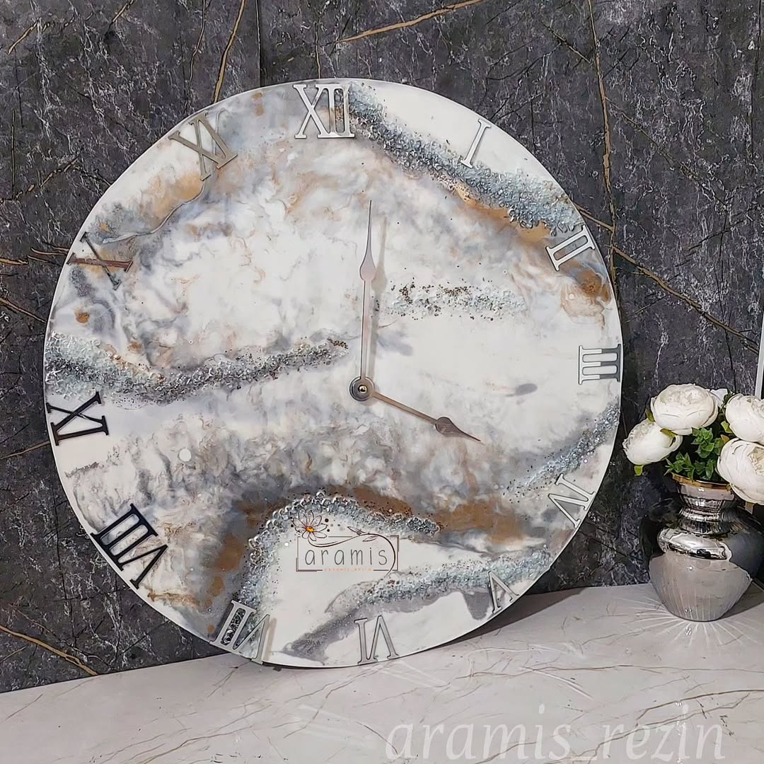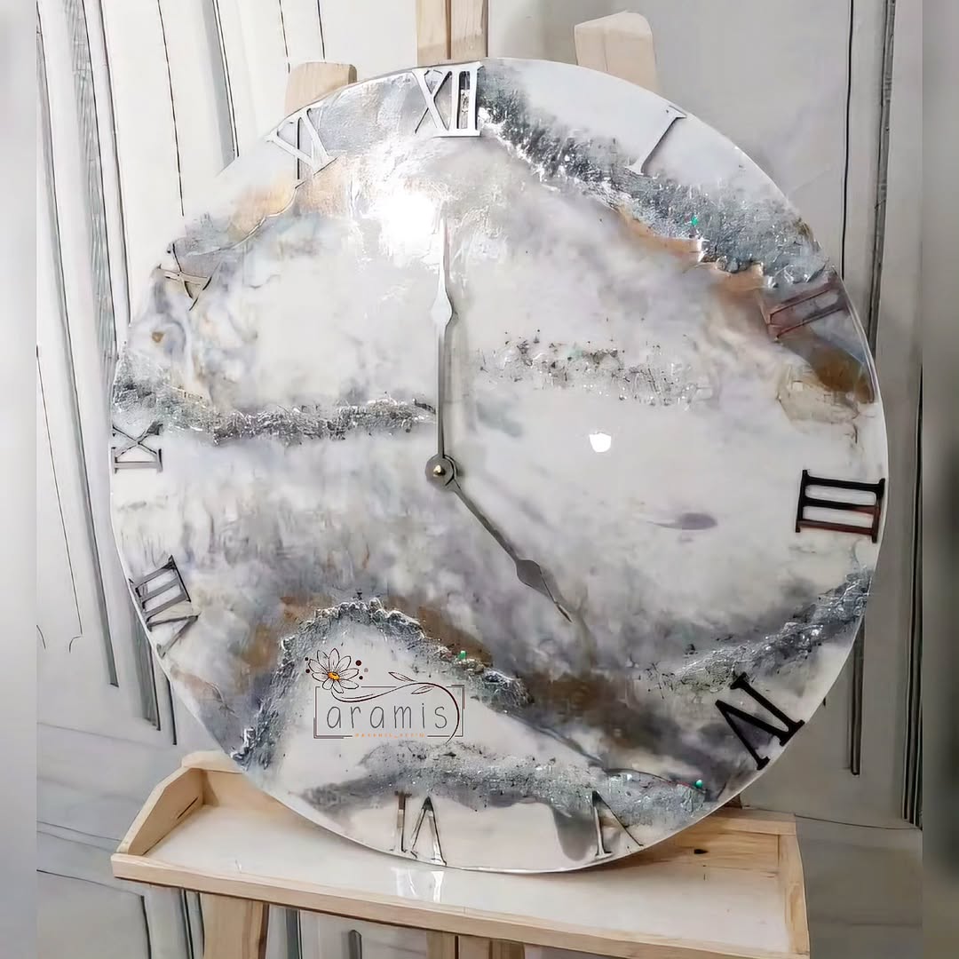 ساعت دیواری رزینی سفید نقرهای طرح هاله