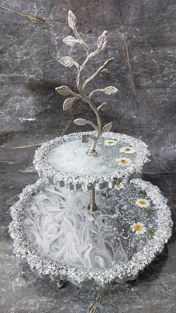 تا آخر ببین عاشقش میشی بالاخره ست بابونه نقره ای که منتظرش بودید ارسال شد به مشتری قشنگم جهت کارها سفارشی هستند جنس رزین اپوکسی قابل در ابعاد و تعداد دلخواه قابل شستشو و تا۸۰درصد نشکن هولدر برگ برنجی ورق نقره و بابونه