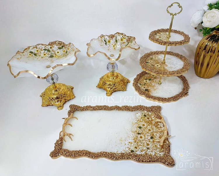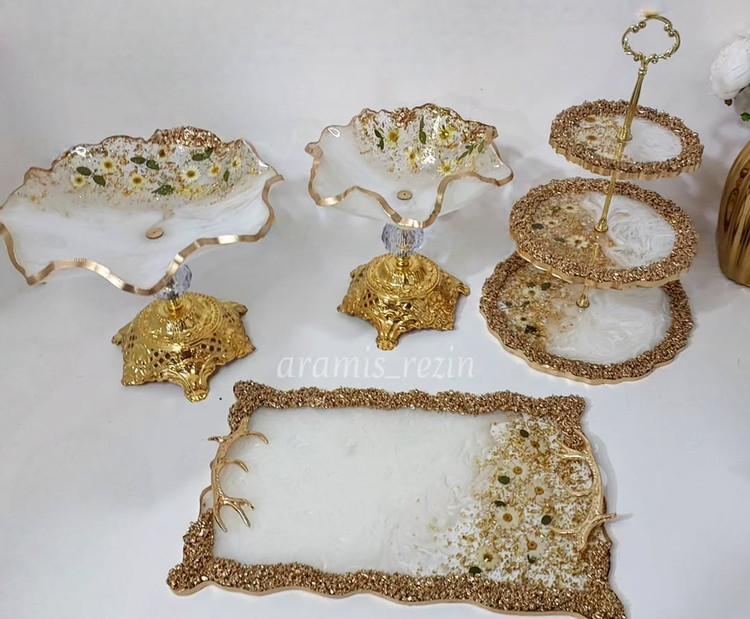 سینی مستطیل۹۵۰ میوهخوری۹۰۰ اجیلخوری۸۵۰ سه طبقه۱،۱۰۰ دررنگ دلخواه و تعداد متناسب با دکوراسیون خانه و فرش و مبلمان و پرده جهت کارها سفارشی هستند،اماده بدید،مجدد براتون ارسال میشه جنس رزین اپوکسی قابل در ابعاد و تعداد دلخواه قابل شستشو و تا۸۰درصد نشکن سبک #ظروفرزینی_بابونه#جهیزیه