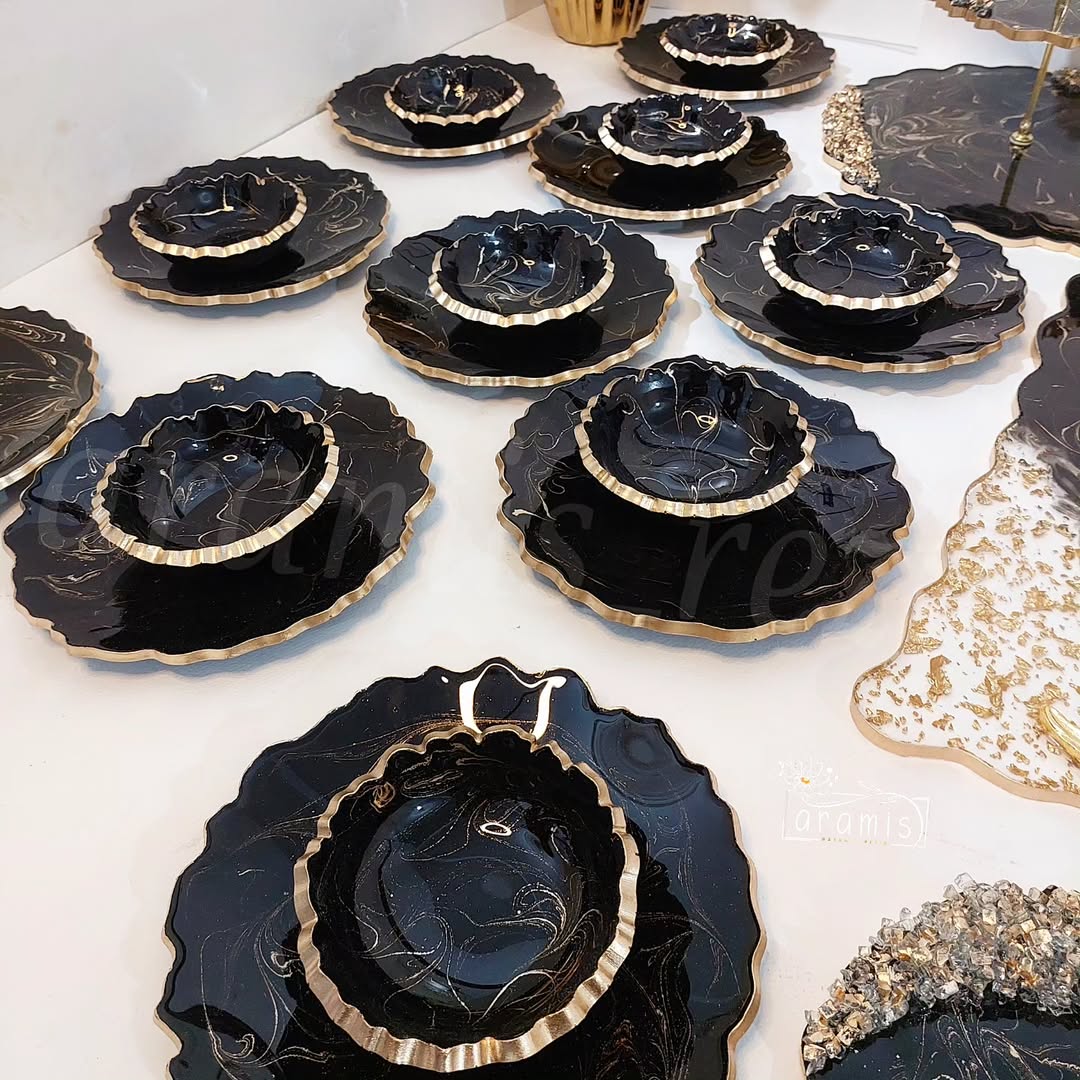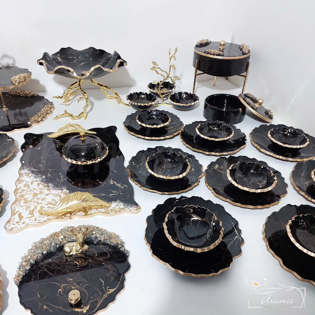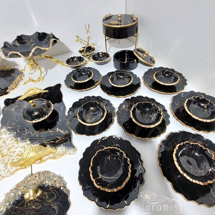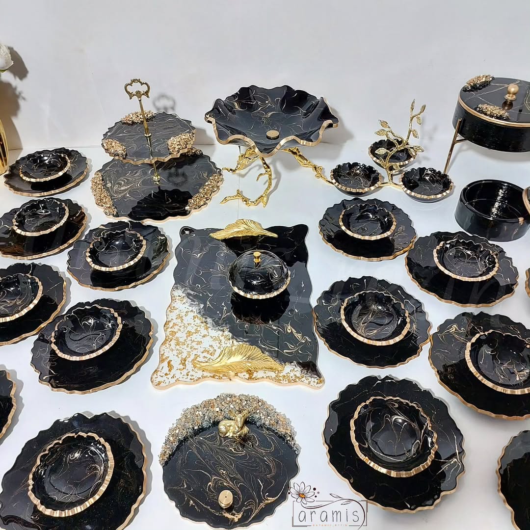 سرویس پذیرایی مشکی ماربل مشکی طلایی رزینی