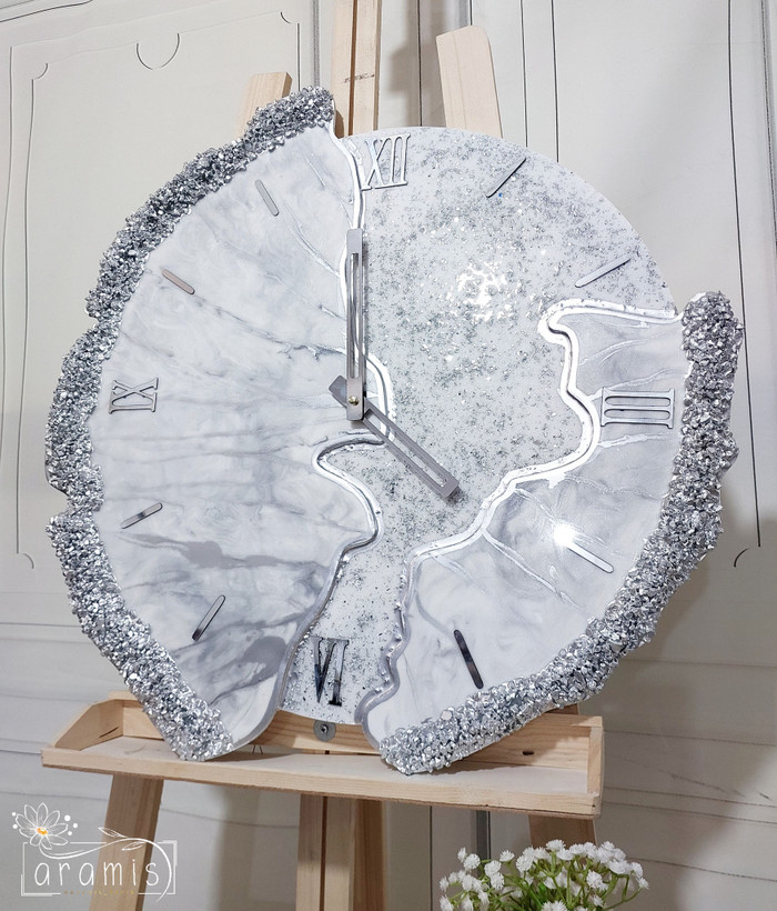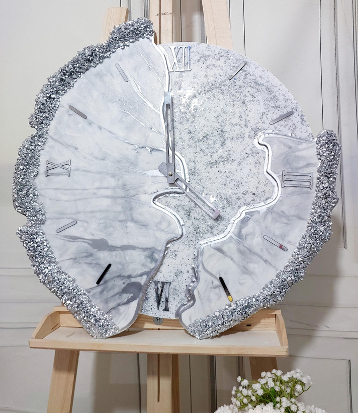 ساعت دیواری رزینی دفرمه سفید نقره ای طرح عروس
