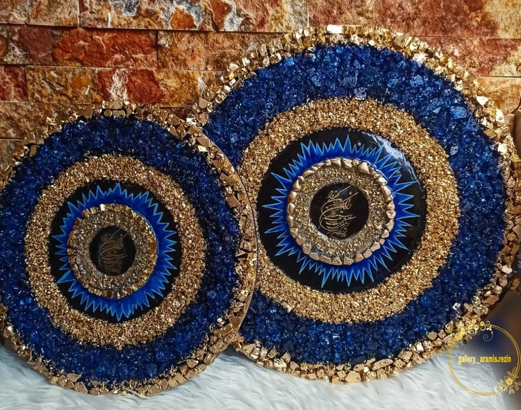 تابلوی رزینی چشم نظر سرمه ای طلایی طرح خورشیدی